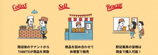 東京駅でまだ食べられる食品を駅で働く従業員に販売(JR東日本スタートアップ)