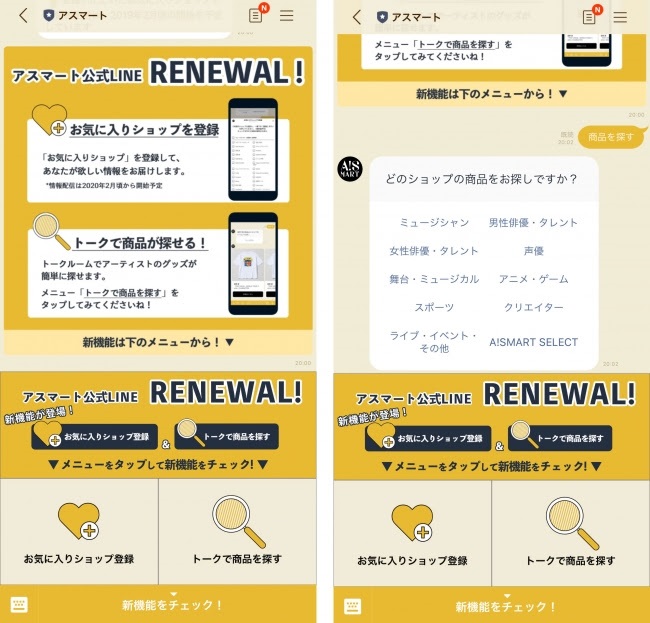 アミューズのオンラインショップ「A!SMART」の公式LINEアカウントに商品検索機能とセグメント配信機能を実装(ファナティック)