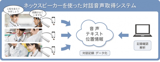 ネックスピーカー型デバイスで対話の音声を取得してテキスト化するシステム(オンキヨー)